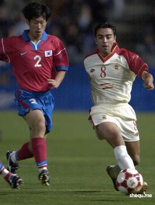 14 Sep 2000:  Park Ji Sung #2 for Korea chases down Xavi #8 for Spain during the Mens Prelimanary Olympic Soccer match between Spain and Korea at the Hindmarsh Stadium, Adelaide, Australia. Spain defeated Korea 3-0.