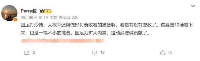 此前9月5日首轮国足客场对阵日本,央视没有转播这场比赛,此后央视发布声明,解释称“深知18强赛重要性,虽反复争取,但对方版权报价极度畸高”,目前仍在与各方持续沟通,争取尽快获得中国队参赛的场次版权,及时播出比赛。