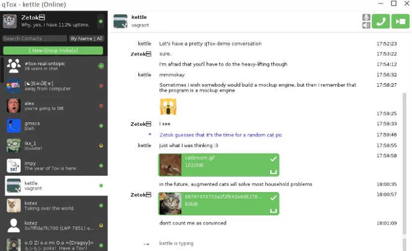 另一个以隐私为首要关注点的暗网相关聊天平台是qTox。这个聊天平台也被称为“Tox”,是由用户为用户构建的,意味着其源代码是一个自由和开源(FOSS)项目,没有任何可能被攻破的集中服务器或协议。该平台默认强制实施完美前向保密(PFS)——这意味着每次聊天都会生成一个唯一的会话密钥。qTox还使用curve25519进行密钥交换,使用xsalsa20进行对称加密,使用poly1305进行消息认证码(MAC)。